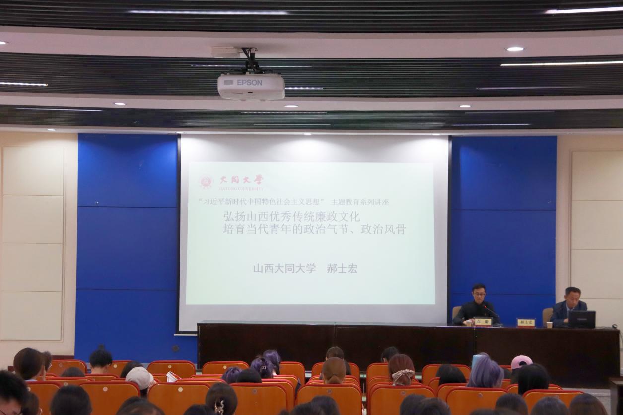 6月3日上午,党委研究生工作部举办的研究生廉洁修身专题培训班系列廉洁教育专题讲座《弘扬山西优秀传统廉政文化培养当代青年的政治气节、政治风骨》在御东校区善美楼报告厅开讲。校党委讲师团成员、马克思主义学院郝士宏副教授以廉洁文化为主题,为研究生同学们带来了一堂生动的廉洁修身课。党委研究生工作部部长白昕主持专题讲座,御东校区全体在校研究生参学。